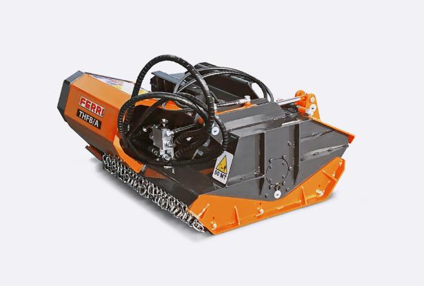 Hydraulic Forestry flail head for mini-excavators and APEIRON rotor with fixed tools and tungsten carbide inserts.